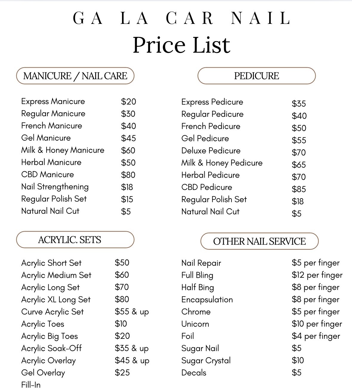 All hair, nail, and beauty services require a $10 deposit to 904-510-9566. Non-refundable deposit for cancellations made on the same day as the appointment.