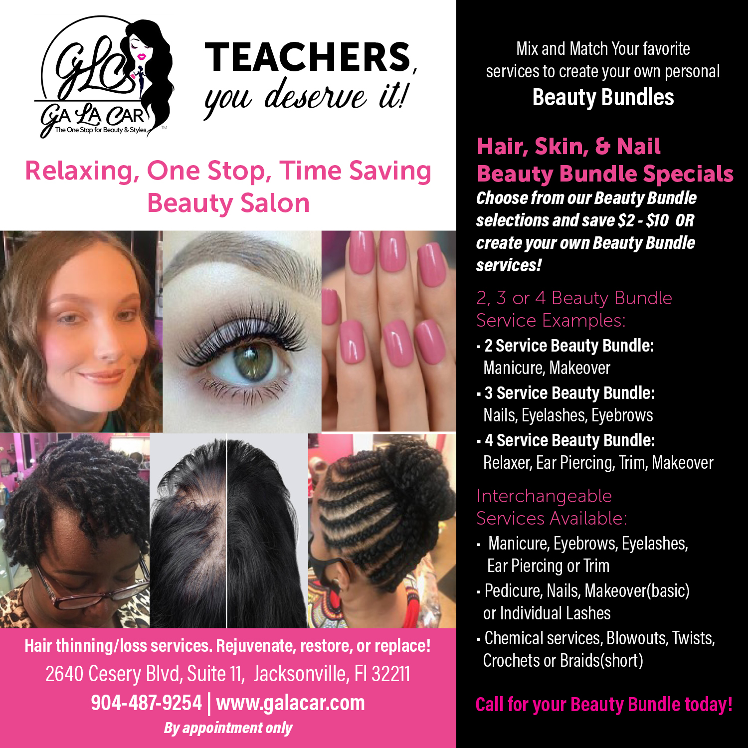 GA LA CAR Salon Services/Online Fashions Questions or Appointments: Email Below or Call 904-487-9254